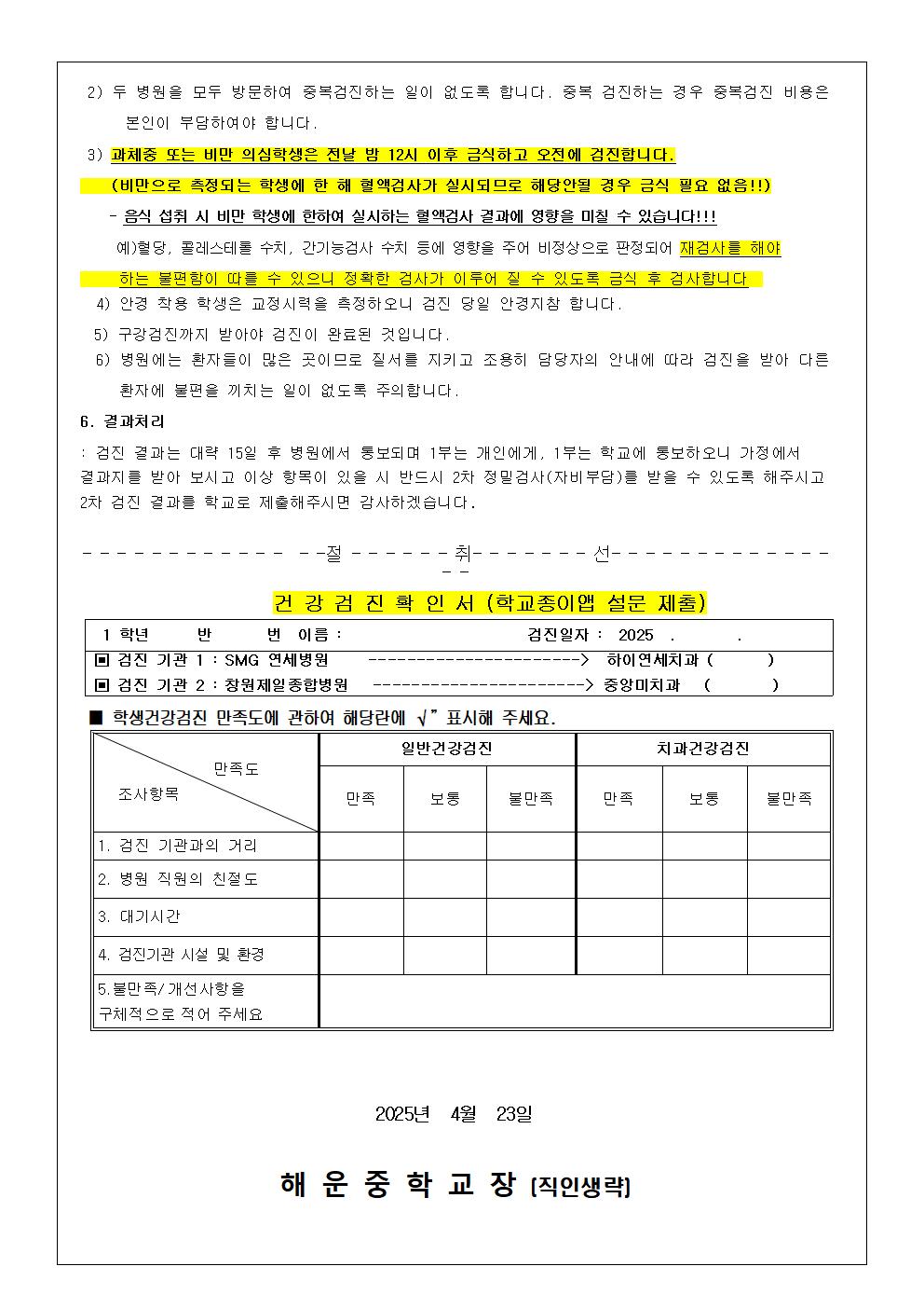 2025. 1학년 학생정서행동특성검사 실시 안내